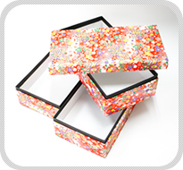 お客様に喜んで頂ける事を一番に考えた パッケージの製造販売を目指しております。当社は昭和27年創業で、当時は地域の靴下箱を主に製造しておりましたが、昭和55年に法人化しギフトパッケージの分野に移行していきました。陶器、素麺、和菓子等の高級ギフトパッケージを目指し試行錯誤しながら今日の姿になってきました。現在では、新しい目線でパッケージを見直し、箱は四角という従来の概念から脱皮し、八角形や六角形、五角形などより中身の商品が見栄えるような工夫をお客様に提案しております。